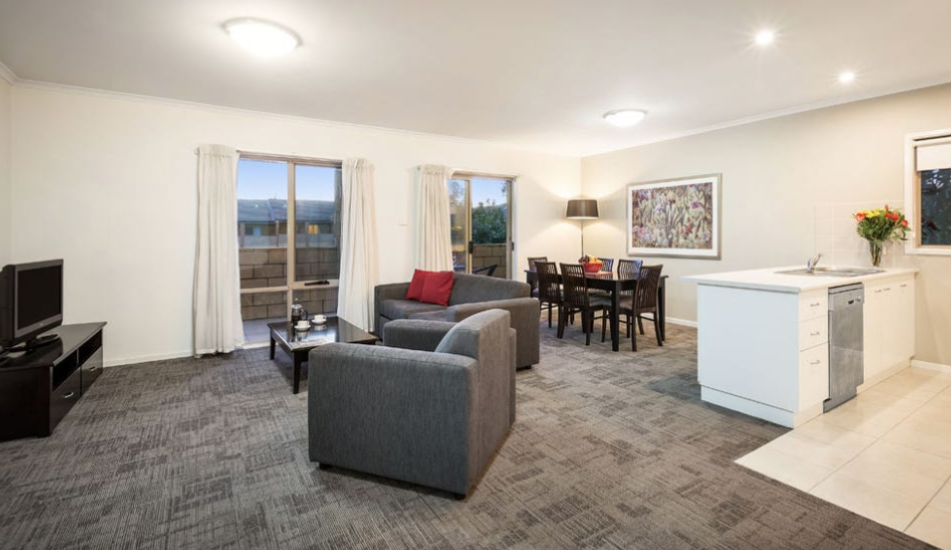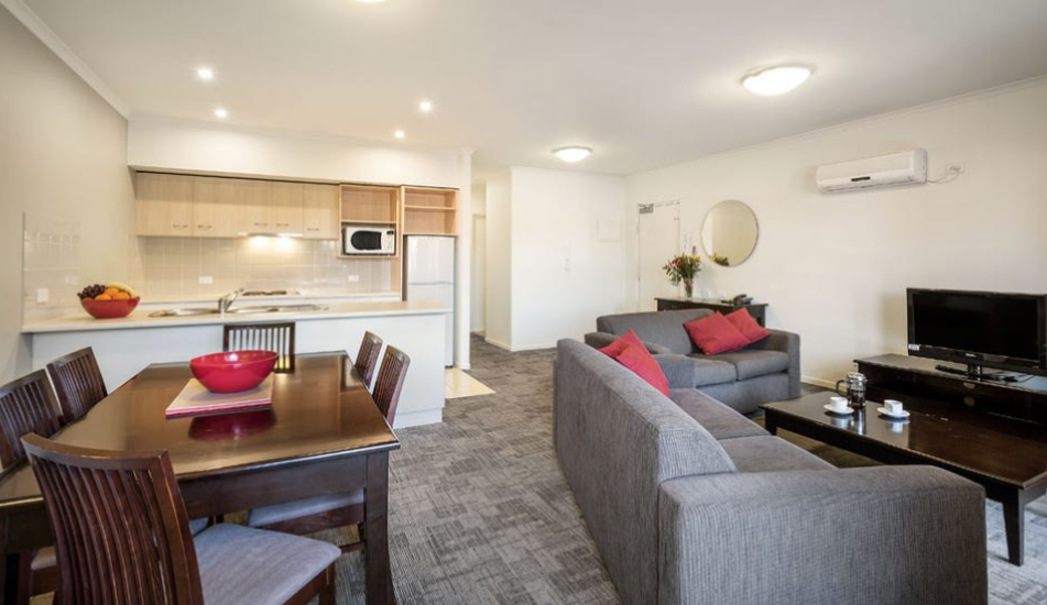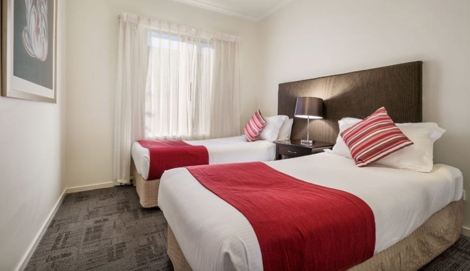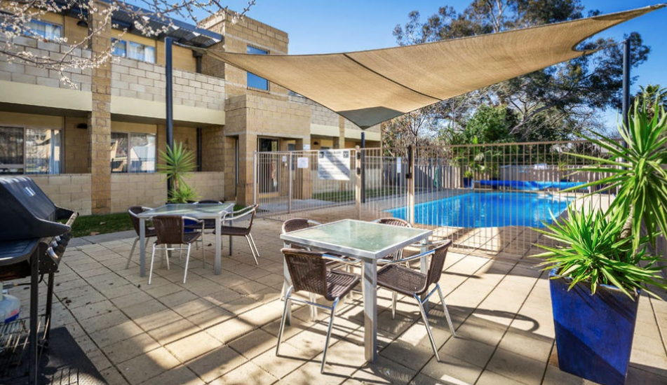 This spacious two bedroom two bathroom with twin keys (main bedroom and studio) serviced apartment is located on level one with balcony and a car space on title. The features include open plan kitchen/living area, modern kitchen, one main bedroom and a studio with seperate kitchenette and ensuite. This complex is nice with great facilities for guests to enjoy such as the in-house gym, swimming pool and BBQ area. Only minutes to the main street of Wagga Wagga. Under long term lease with Quest Apartment Hotels.