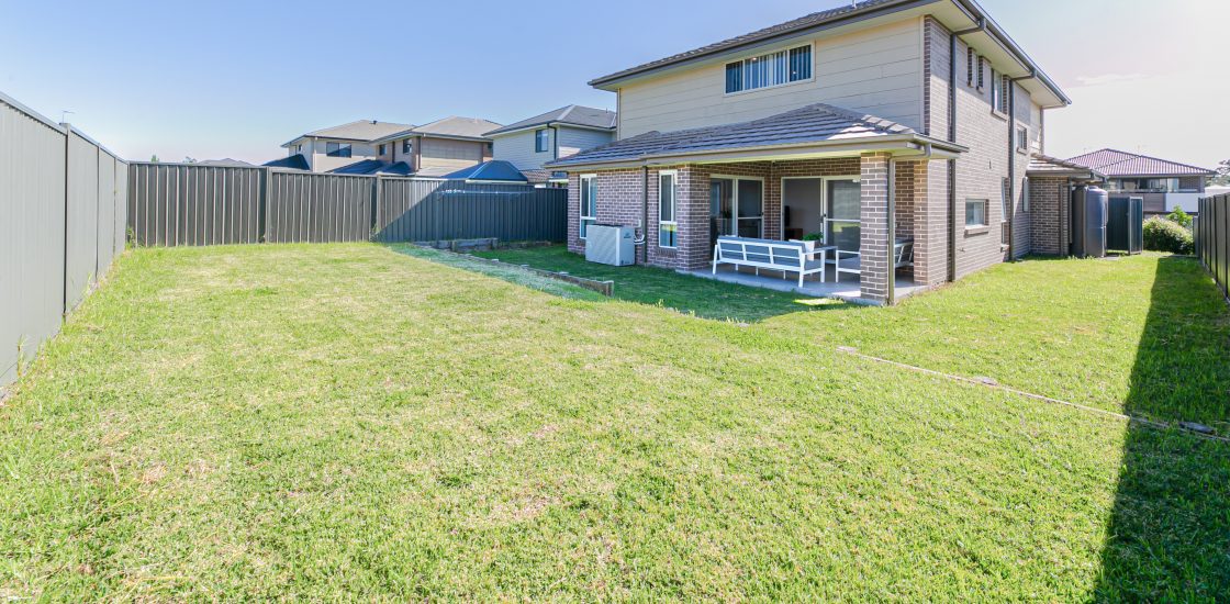 – Low maintenance green grassed backyard for kids and pets