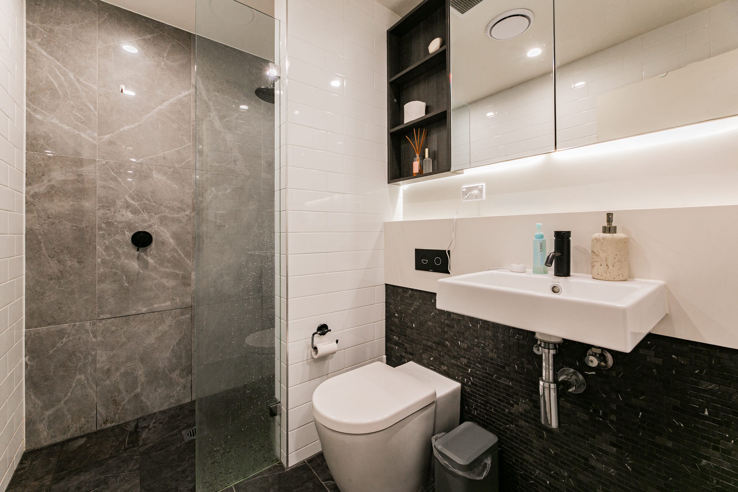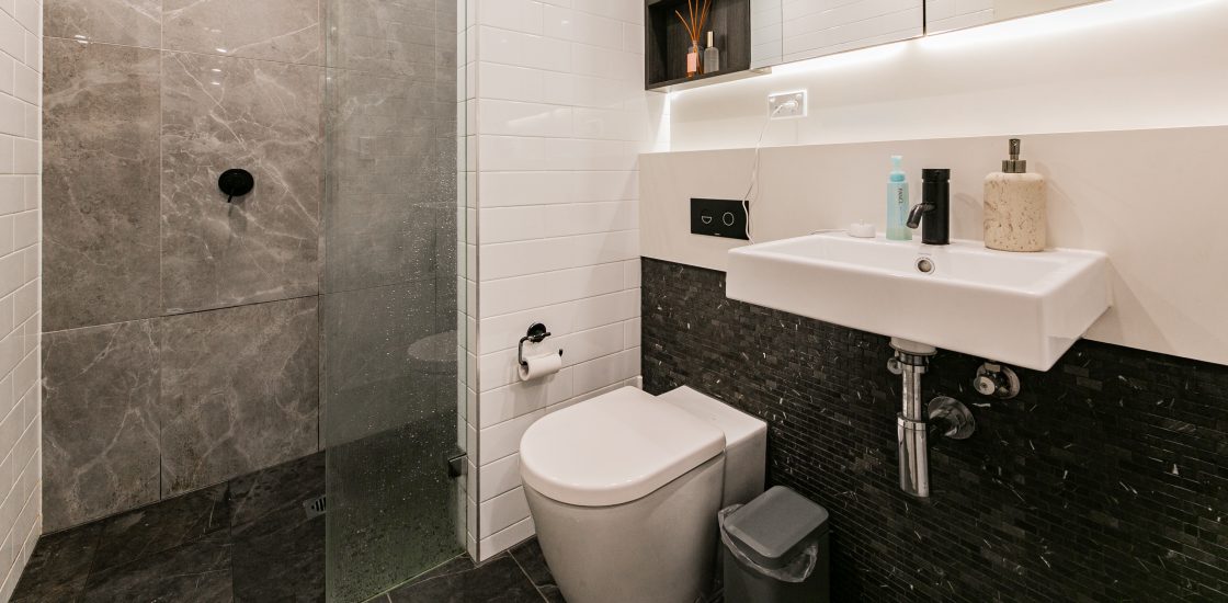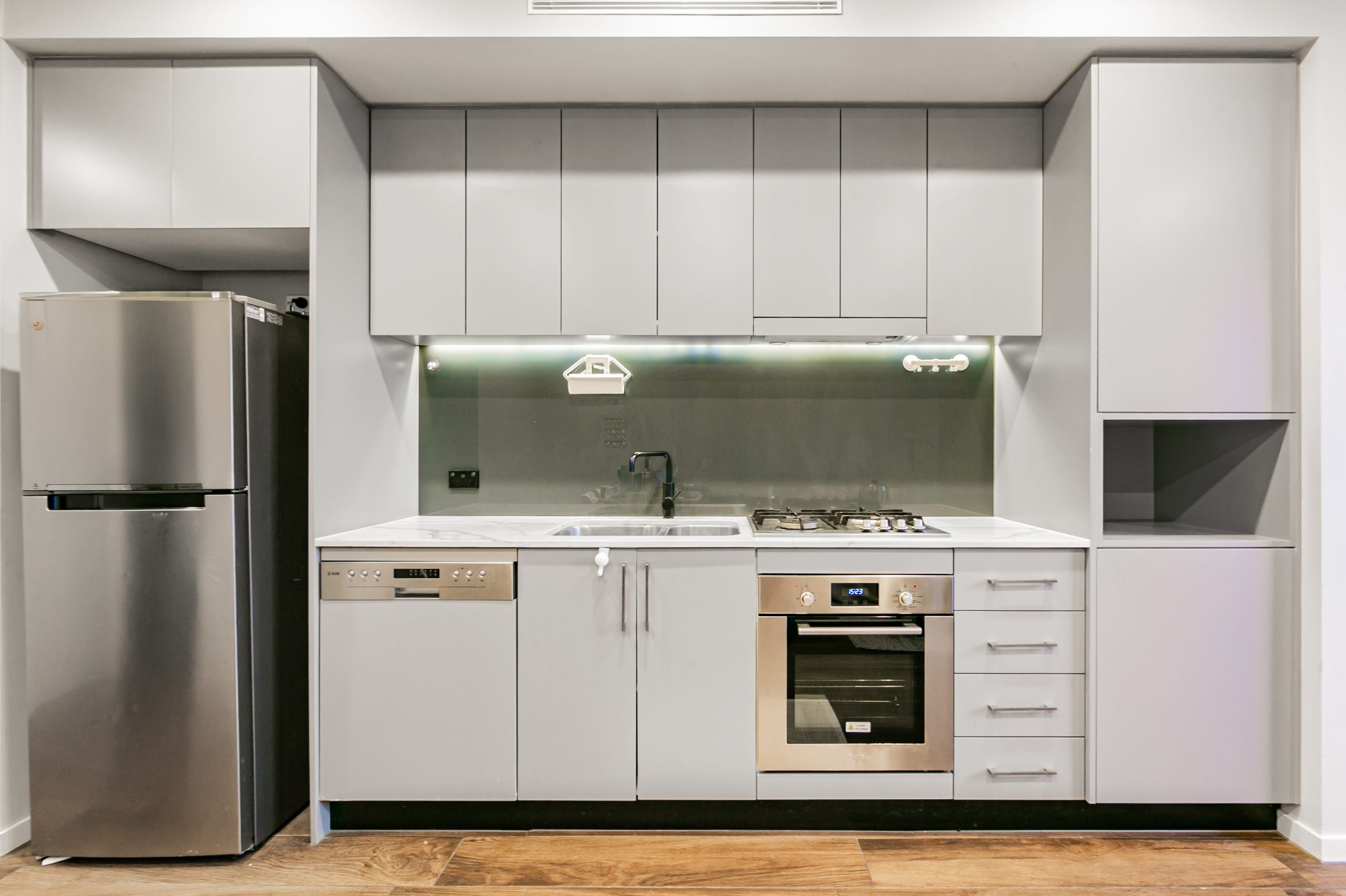 The kitchen is uber modern as is the bathroom. The cabinetry, kitchen fittings and appliances are of quality and are aesthetically very pleasing.