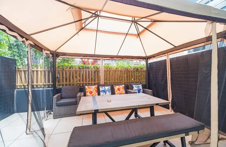 North-facing, split-level townhouse with excellent privacy