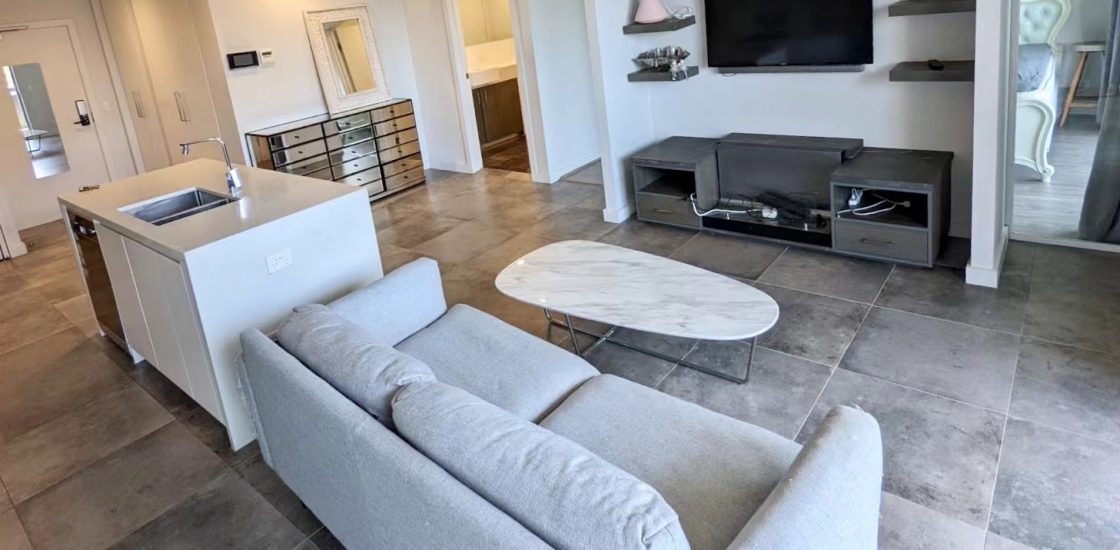 * Expansive open plan living area adjoining oversized entertainer’s balcony.