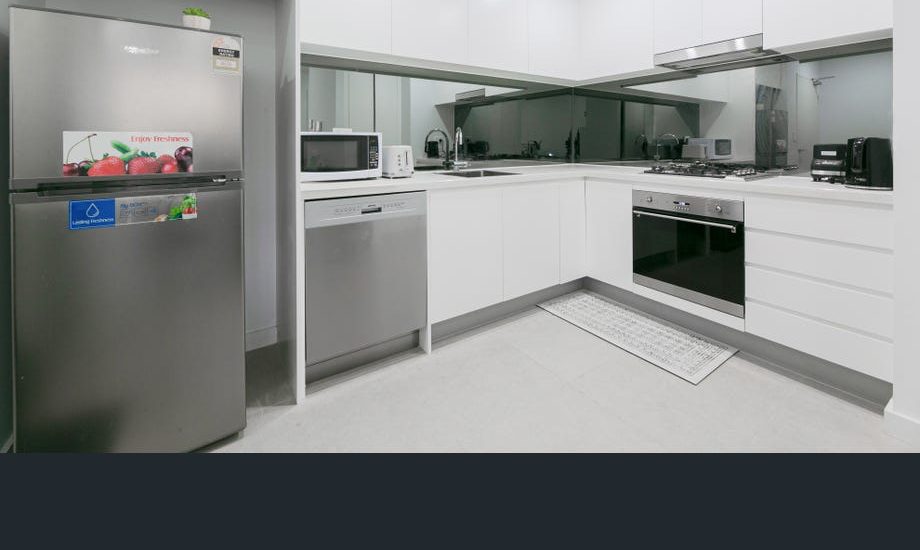 * Modern kitchen appliances, including gas cooktop and dishwasher